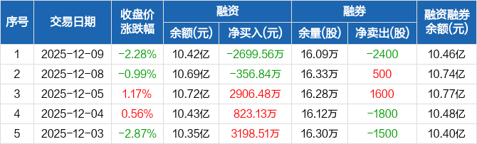 上海机电:融资净偿还2699.56万元,融资余额10.42亿元(12-09)