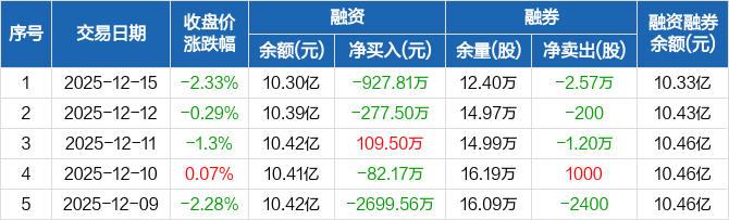 上海机电:融资净偿还927.81万元,融资余额10.3亿元(12-15)