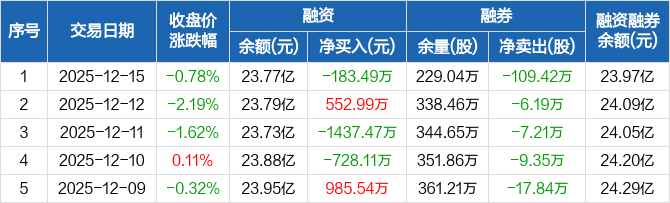 四川长虹:融资净偿还183.49万元,融资余额23.77亿元(12-15)