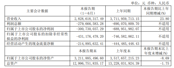2025年上半年,公司营业收入为28.29亿元,同比下降23.80%;归母净利润为-3.01亿元,同比增长56.35%;扣非归母净利润为-4.31亿元,同比增长42.25%。