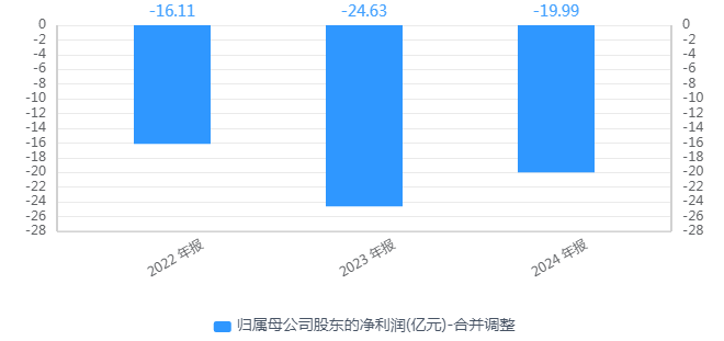 业绩方面,动力新科已连续三年度亏损,今年上半年亏损收窄,三年半累计亏损约63.74亿元。2022年至2024年,公司归母净利润分别亏损16.11亿元、24.63亿元、19.99亿元。