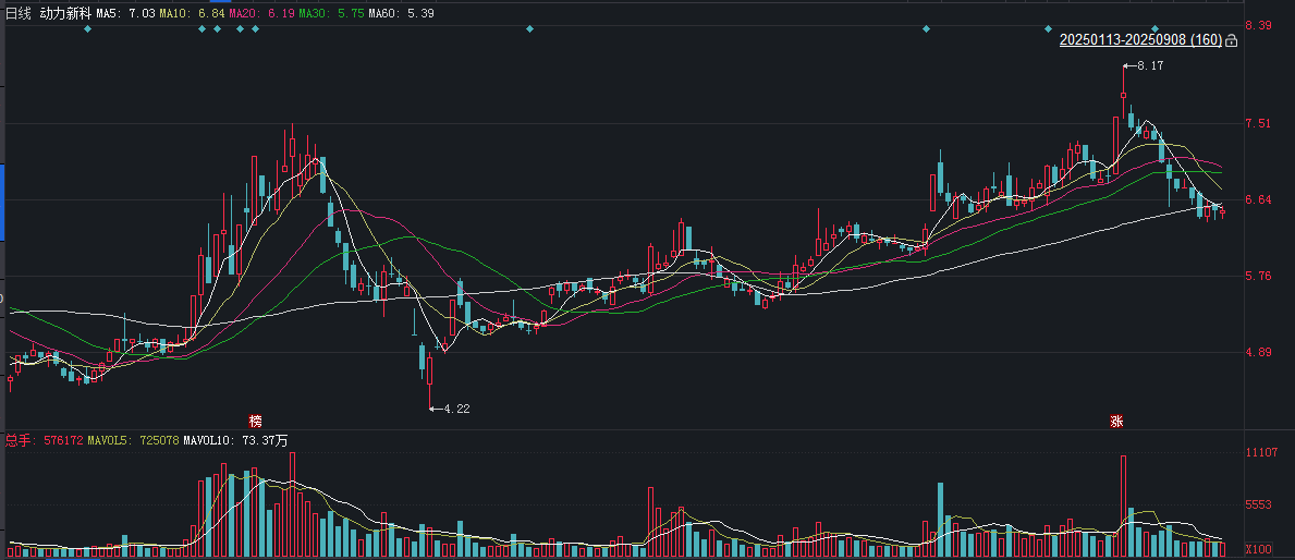 二级市场上,截至9月8日收盘,动力新科报6.50元/股,最新市值90.21亿元,今年来公司股价累计上涨近三成。