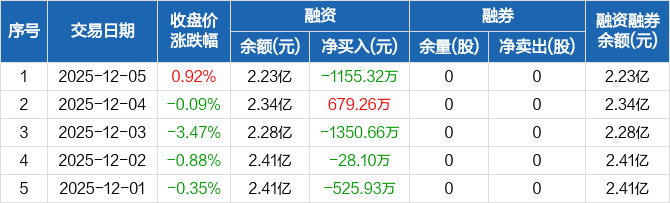 上工申贝:融资净偿还1155.32万元,融资余额2.23亿元(12-05)