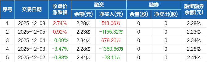 上工申贝:融资净买入513.06万元,融资余额2.28亿元(12-08)