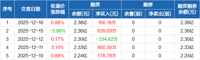 上工申贝:融资净买入166.18万元,融资余额2.38亿元(12-16)