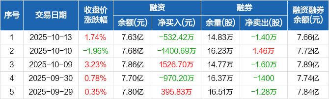 宝信软件:融资净偿还532.42万元,融资余额7.63亿元(10-13)