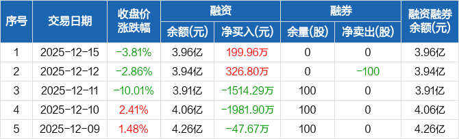 同济科技:融资净买入199.96万元,融资余额3.96亿元(12-15)