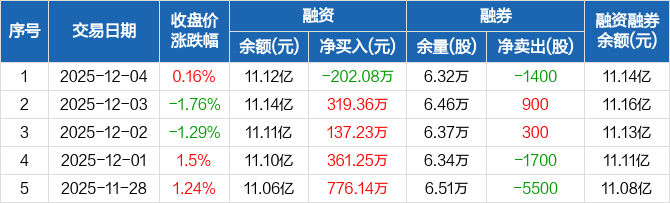 电科数字:融资净偿还202.08万元,融资余额11.12亿元(12-04)