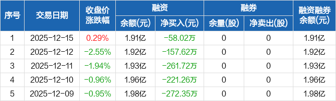 海欣股份:连续6日融资净偿还累计1465万元(12-15)