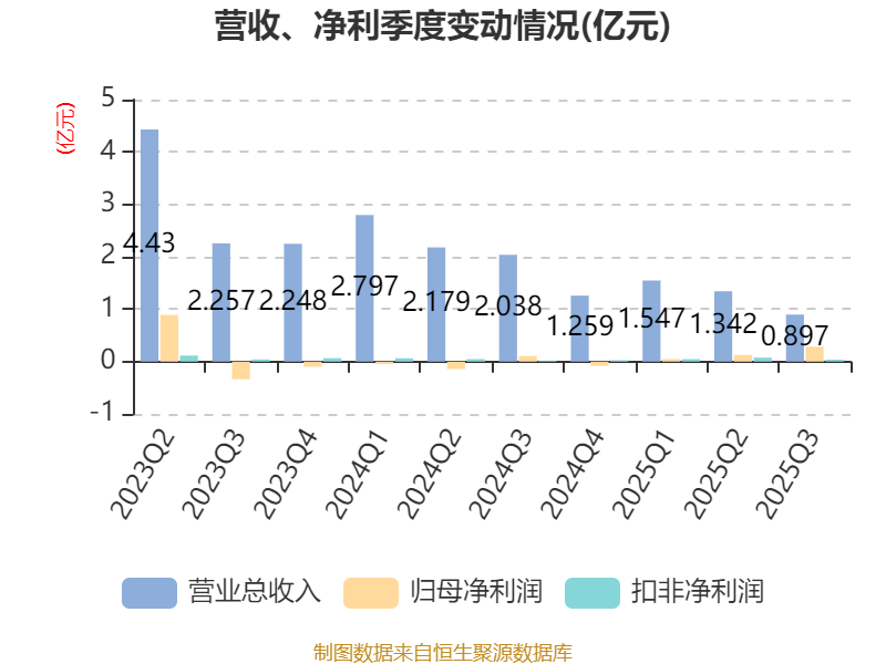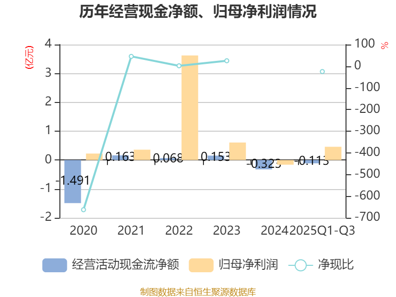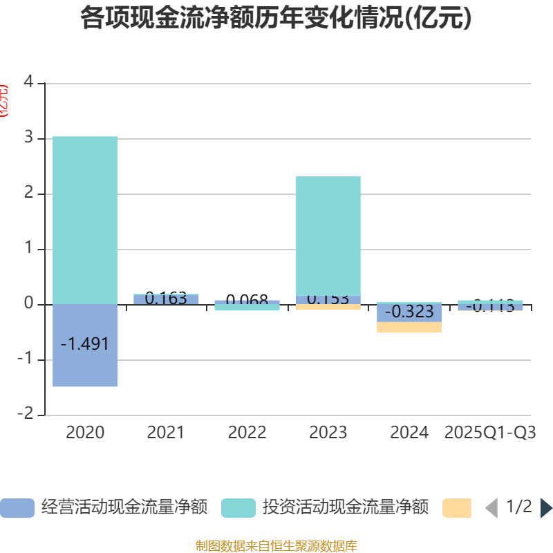 2025年前三季度,公司经营活动现金流净额为-1133.17万元,同比减少3248.23万元;筹资活动现金流净额-101.06万元,同比增加1805.66万元;投资活动现金流净额676.68万元,上年同期为375.97万元。