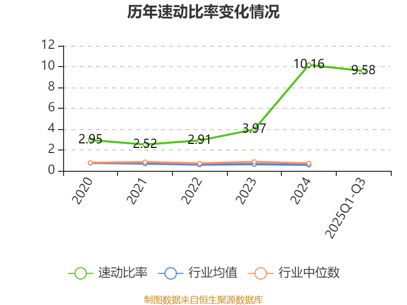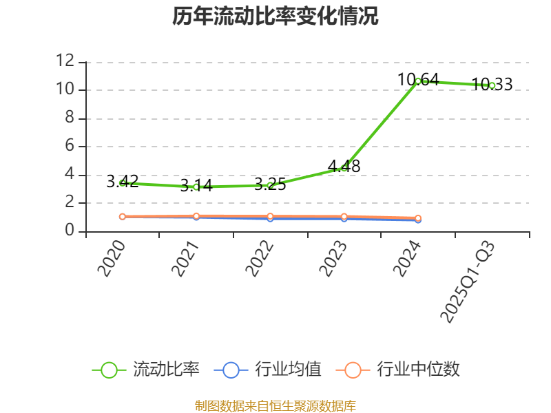 2025年前三季度,公司流动比率为10.33,速动比率为9.58。