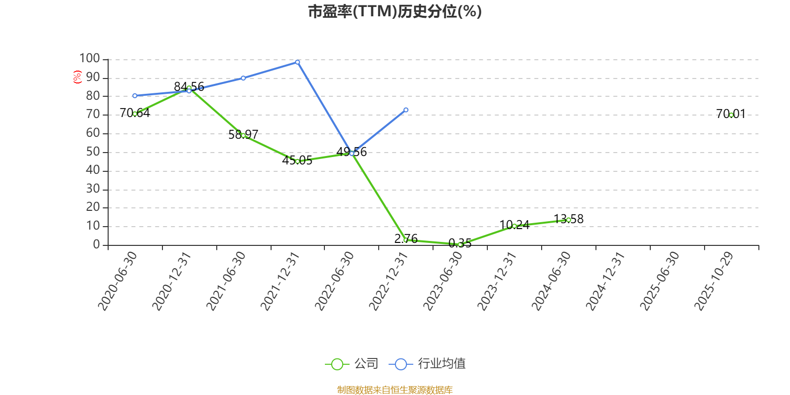 市盈率、市净率为负时,不显示当期分位数,会导致折线图中断。