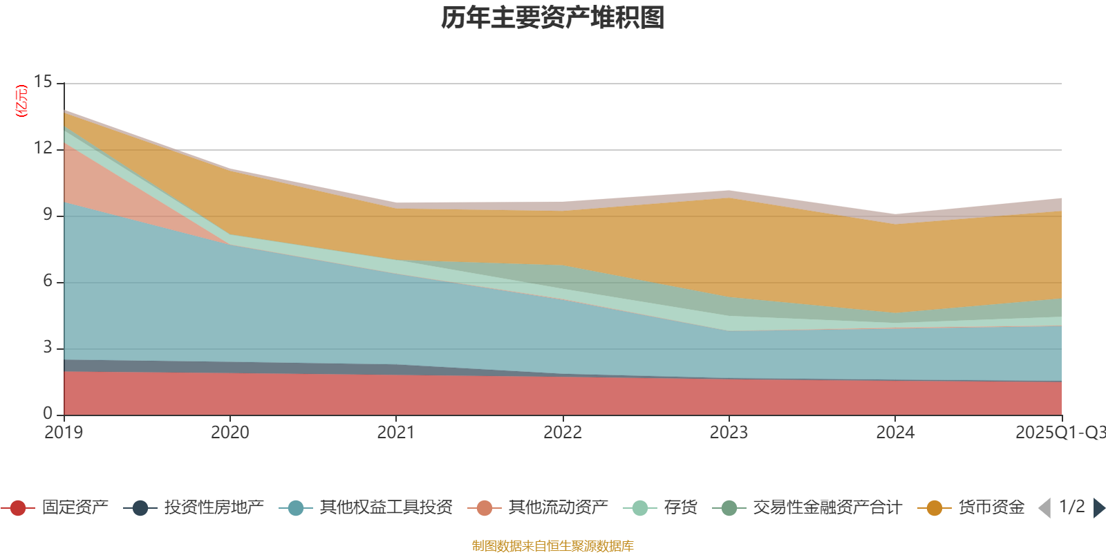 资产重大变化方面,截至2025年三季度末,公司货币资金较上年末减少1.39%,占公司总资产比重下降3.82个百分点;交易性金融资产合计较上年末增加85.37%,占公司总资产比重上升3.56个百分点;预付款项较上年末增加1352.57%,占公司总资产比重上升2.13个百分点;固定资产较上年末减少3.67%,占公司总资产比重下降1.82个百分点。