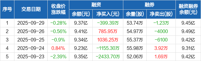 王府井:融资净偿还399.39万元,融资余额9.37亿元(09-29)