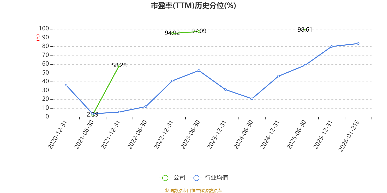 市盈率、市净率为负时,不显示当期分位数,会导致折线图中断。