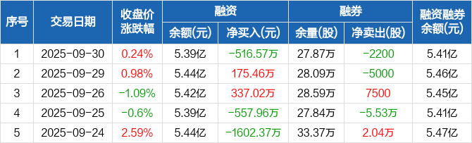 通化东宝:融资净偿还516.57万元,融资余额5.39亿元(09-30)
