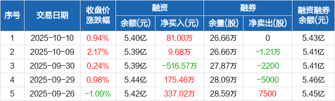 通化东宝:融资净买入81万元,融资余额5.4亿元(10-10)