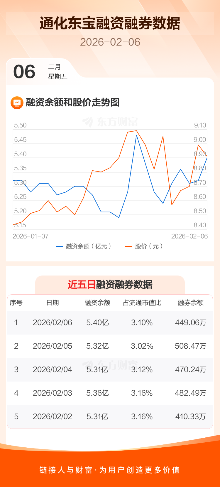交易所最新数据显示,通化东宝于2026年2月6日获融资买入3045.01万元,融资偿还2216.95万元,当日融资净买入828.06万元。目前,该股融资余额5.40亿,占流通市值比例为3.10%。