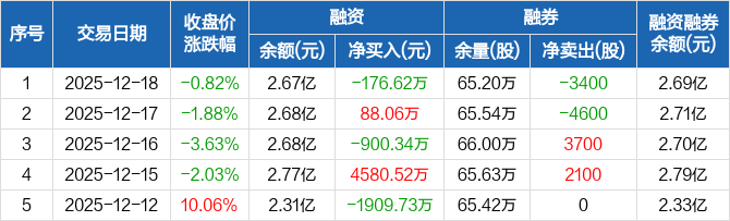 梅雁吉祥:融资净偿还176.62万元,融资余额2.67亿元(12-18)