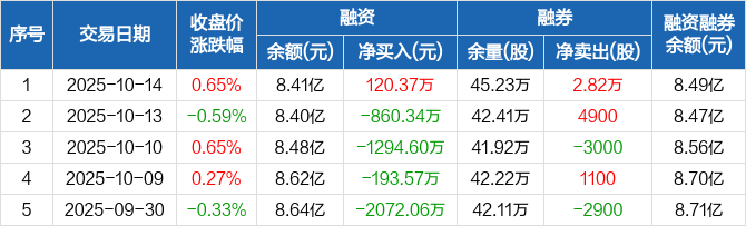 中炬高新:融资净买入120.37万元,融资余额8.41亿元(10-14)