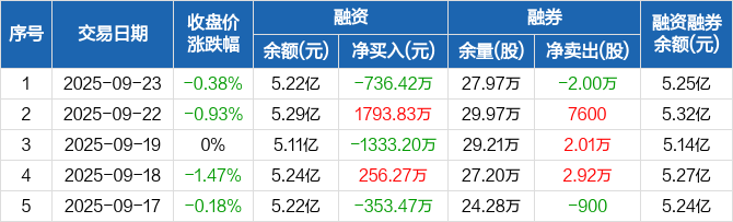 梅花生物:融资净偿还736.42万元,融资余额5.22亿元(09-23)