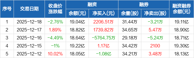 东方电气:融资净买入2206.51万元,融资余额19.04亿元(12-18)
