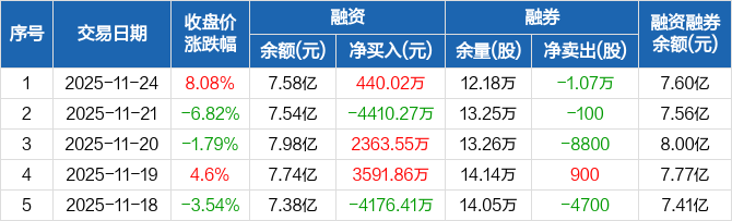 电科芯片:融资净买入440.02万元,融资余额7.58亿元(11-24)
