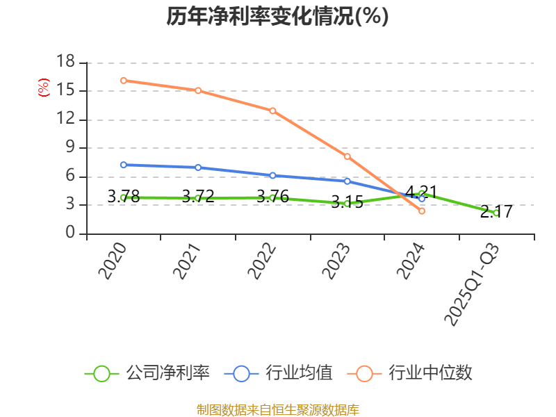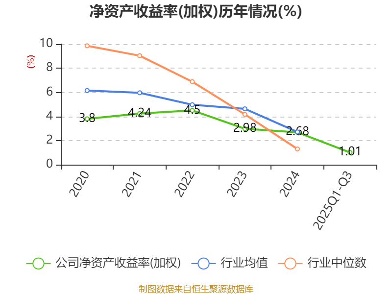 盈利能力方面, 2025年前三季度公司加权平均净资产收益率为1.01%,同比下降1.73个百分点。公司2025年前三季度投入资本回报率为0.9%,较上年同期下降1.41个百分点。