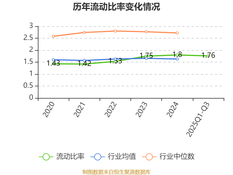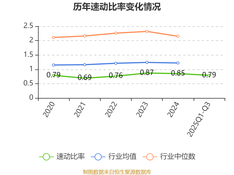 2025年前三季度,公司流动比率为1.76,速动比率为0.79。