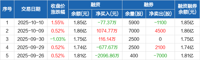 亚泰集团:融资净偿还77.37万元,融资余额1.85亿元(10-10)