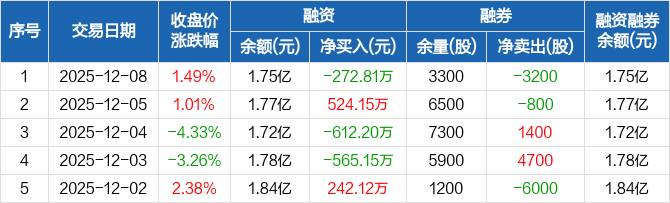 亚泰集团:融资净偿还272.81万元,融资余额1.75亿元(12-08)