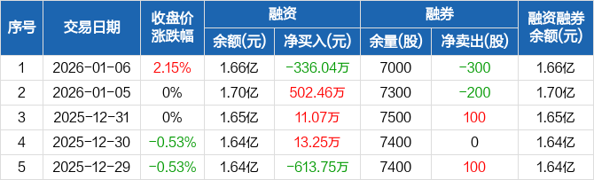 亚泰集团:融资净偿还336.04万元,融资余额1.66亿元(01-06)