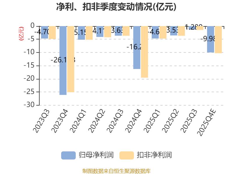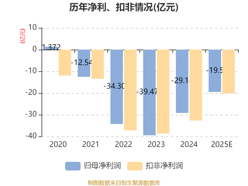 中证智能财讯亚泰集团(600881)1月19日晚间披露2025年度业绩预告,预计2025年归母净利润亏损16亿元至23亿元,上年同期亏损29.18亿元;扣非净利润亏损16.66亿元至23.66亿元,上年同期亏损32.68亿元。以最新收盘价计算,市净率(LF)约3.56倍,市销率(TTM)约0.89倍。