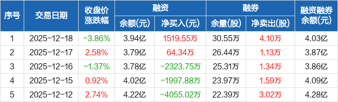 宏发股份:融资净买入1519.55万元,融资余额3.94亿元(12-18)