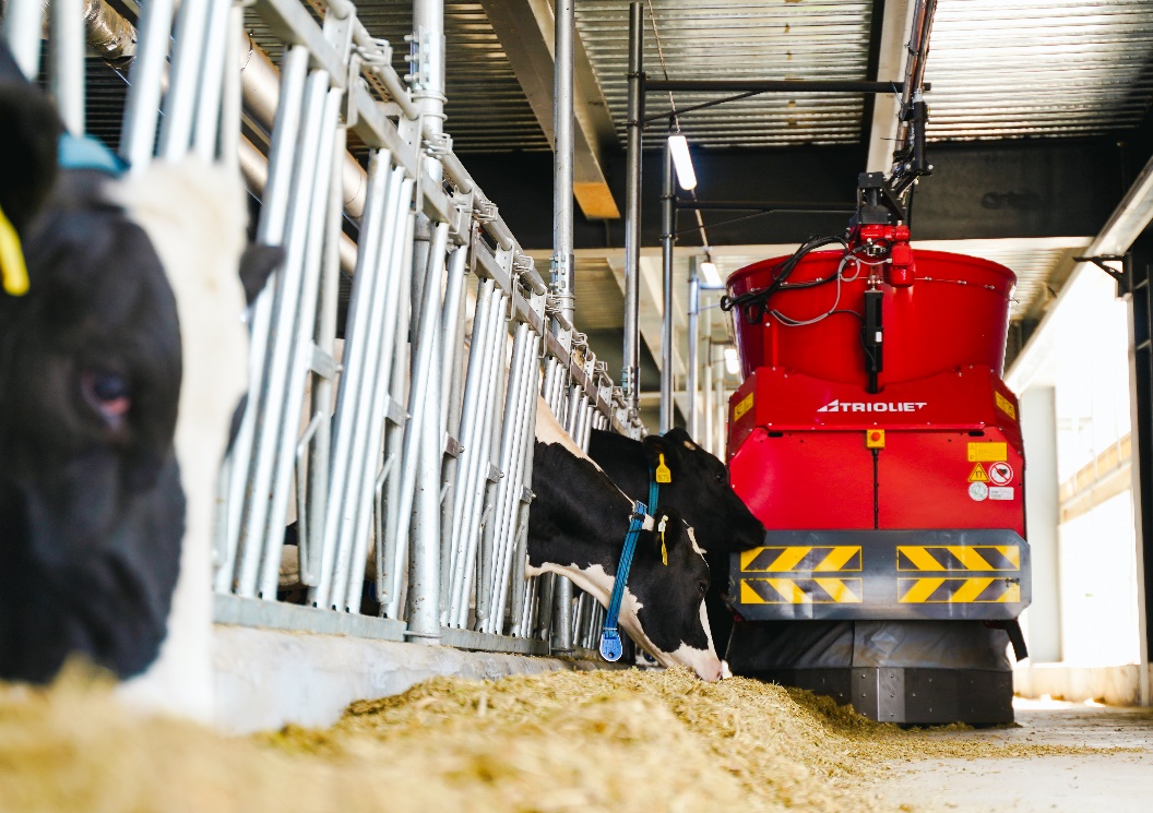 奶牛想吃就吃,牧场根据每头牛的泌乳阶段、健康数据和采食习惯,精确计算日粮所需的营养元素,例如,泌乳高峰期奶牛每天可自由采食玉米青贮、苜蓿草等定制化营养套餐;想喝就喝,水槽每天清洗,让奶牛喝上“冬暖夏凉(冬季:14-17°C;夏季:常温水)”的水;想睡就睡,每头奶牛都有自己的专属单间和舒适的卧床,每天睡足13个小时左右。牧场通过奶牛的电子项圈监测奶牛反刍频率、步数等数据,AI系统可提前48小时预警乳腺炎等疾病。