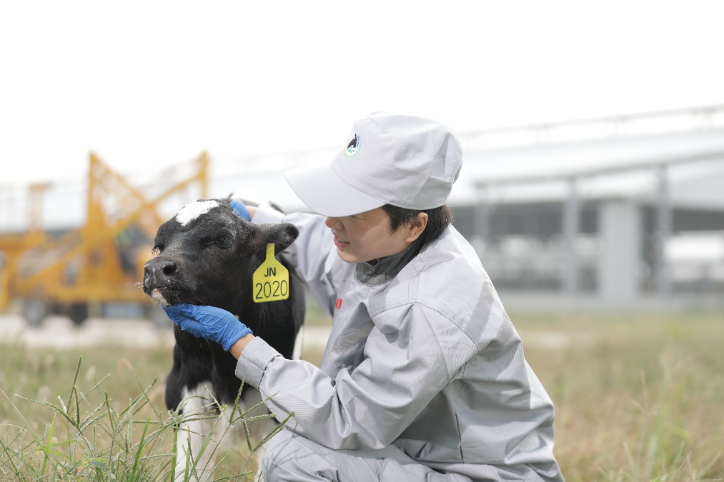 奶牛在牧场工作人员的精心呵护下成长