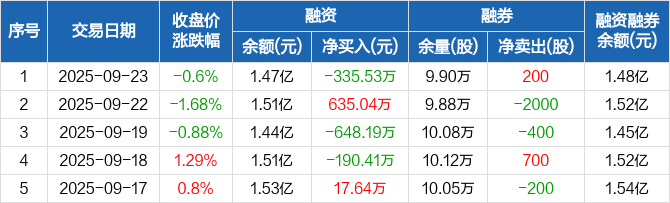 广日股份:融资净偿还335.53万元,融资余额1.47亿元(09-23)