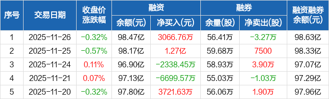 长江电力:融资净买入3066.76万元,融资余额98.47亿元(11-26)