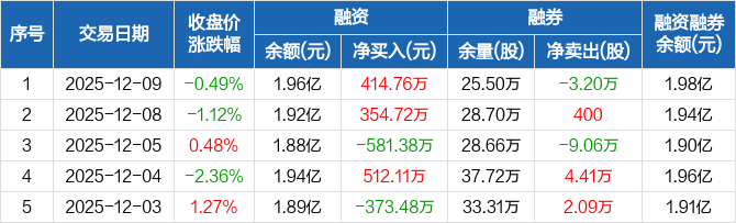 江苏金租:融资净买入414.76万元,融资余额1.96亿元(12-09)