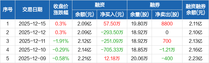 贵州燃气:融资净买入57.5万元,融资余额2.09亿元(12-15)