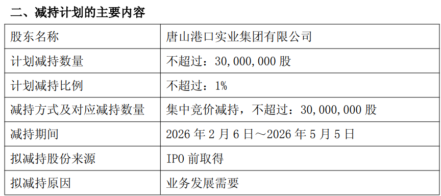 2026年1月15日,财达证券(600906)发布公告,持股5%以上股东的一致行动人唐山港口实业集团有限公司计划减持不超过3000万股,占公司总股本的1%。