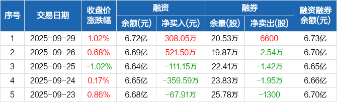 无锡银行:融资净买入308.05万元,融资余额6.72亿元(09-29)