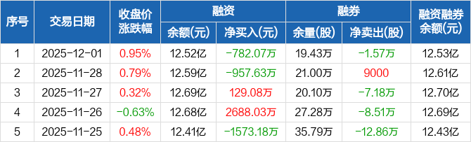 华安证券:融资净偿还782.07万元,融资余额12.52亿元(12-01)