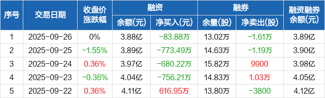 中国黄金:连续4日融资净偿还累计2293.8万元(09-26)