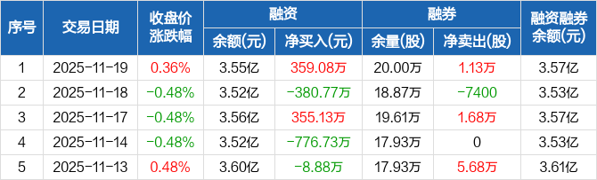 中国黄金:融资净买入359.08万元,融资余额3.55亿元(11-19)