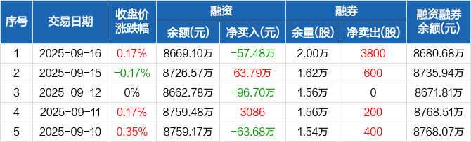 重庆燃气:融资净偿还57.48万元,融资余额8669.1万元(09-16)