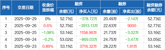 江苏银行:融资净偿还378.72万元,融资余额52.71亿元(09-29)