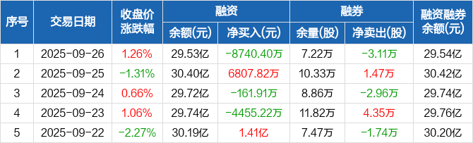 杭州银行:融资净偿还8740.4万元,融资余额29.53亿元(09-26)