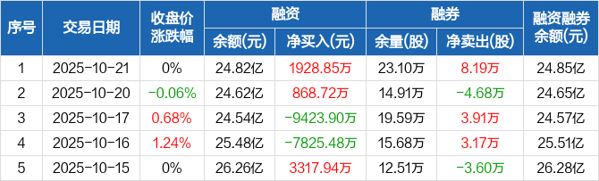 杭州银行:融资净买入1928.85万元,融资余额24.82亿元(10-21)