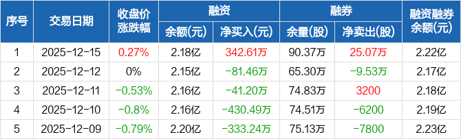 西安银行:融资净买入342.61万元,融资余额2.18亿元(12-15)